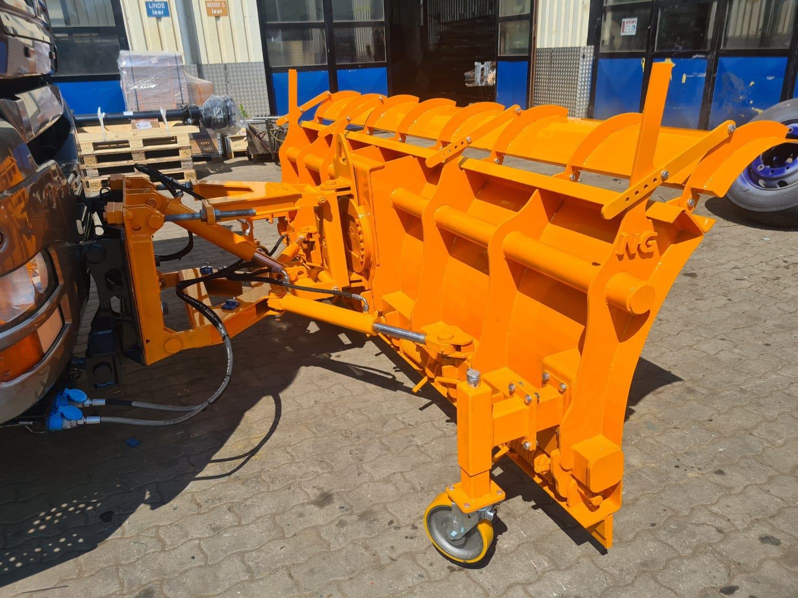NG Attachments manufactures versatile and heavy-duty snow blade attachments for loaders, backhoe loaders, and trucks, ensuring high-performance snow removal across municipalities, airports, highways, and logistics centers. Designed with replaceable wear blades, hydraulic angle adjustment, and robust steel construction, our snow plows deliver maximum efficiency during winter operations. The blades are compatible with quick couplers and truck mounting brackets, available in straight and V-shaped designs. Optional shock absorber springs and polyurethane edge strips can be included to adapt to surface conditions. Key Features- Hydraulic angle adjustment (±30°)